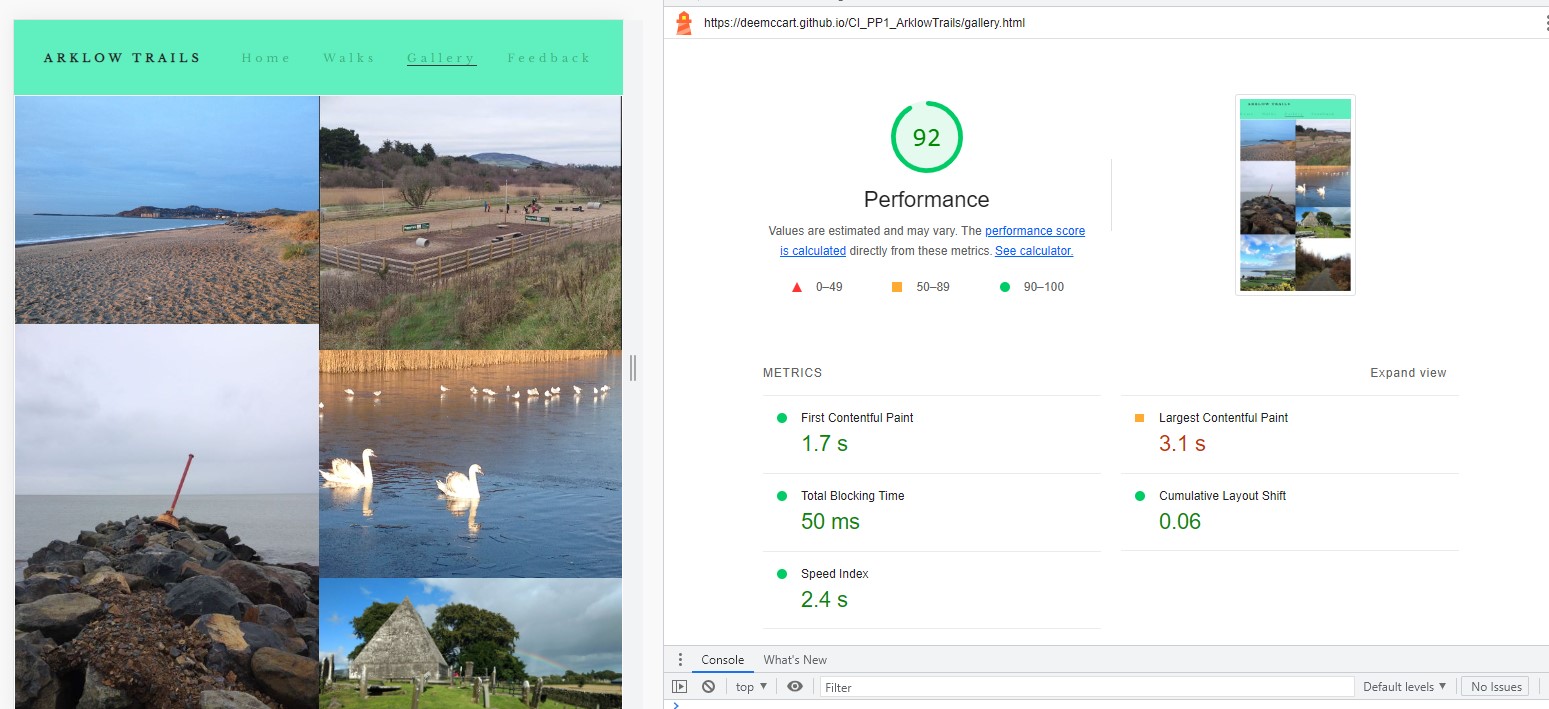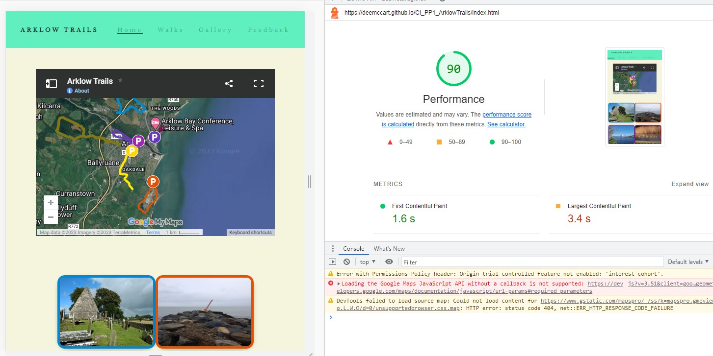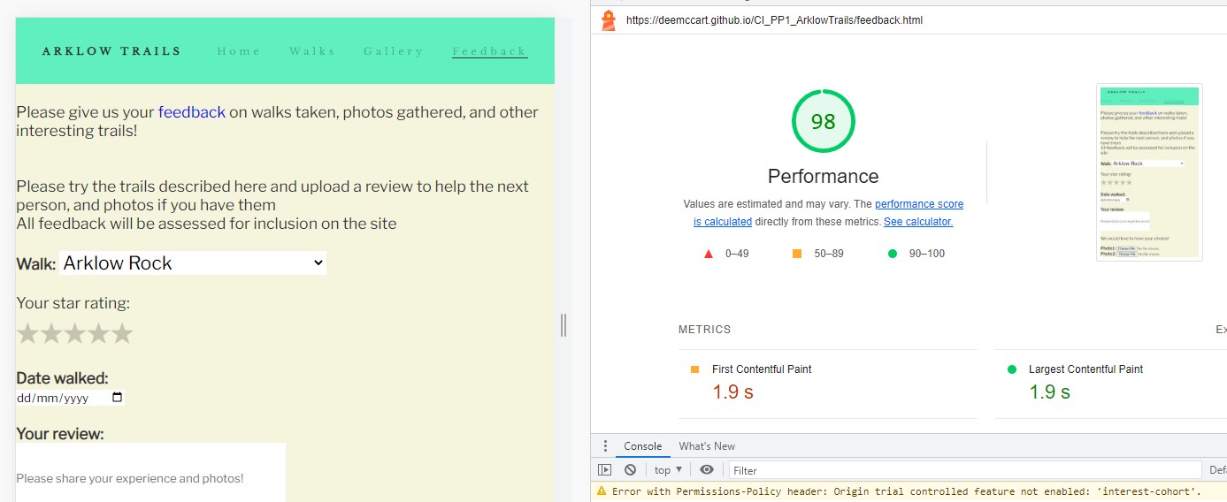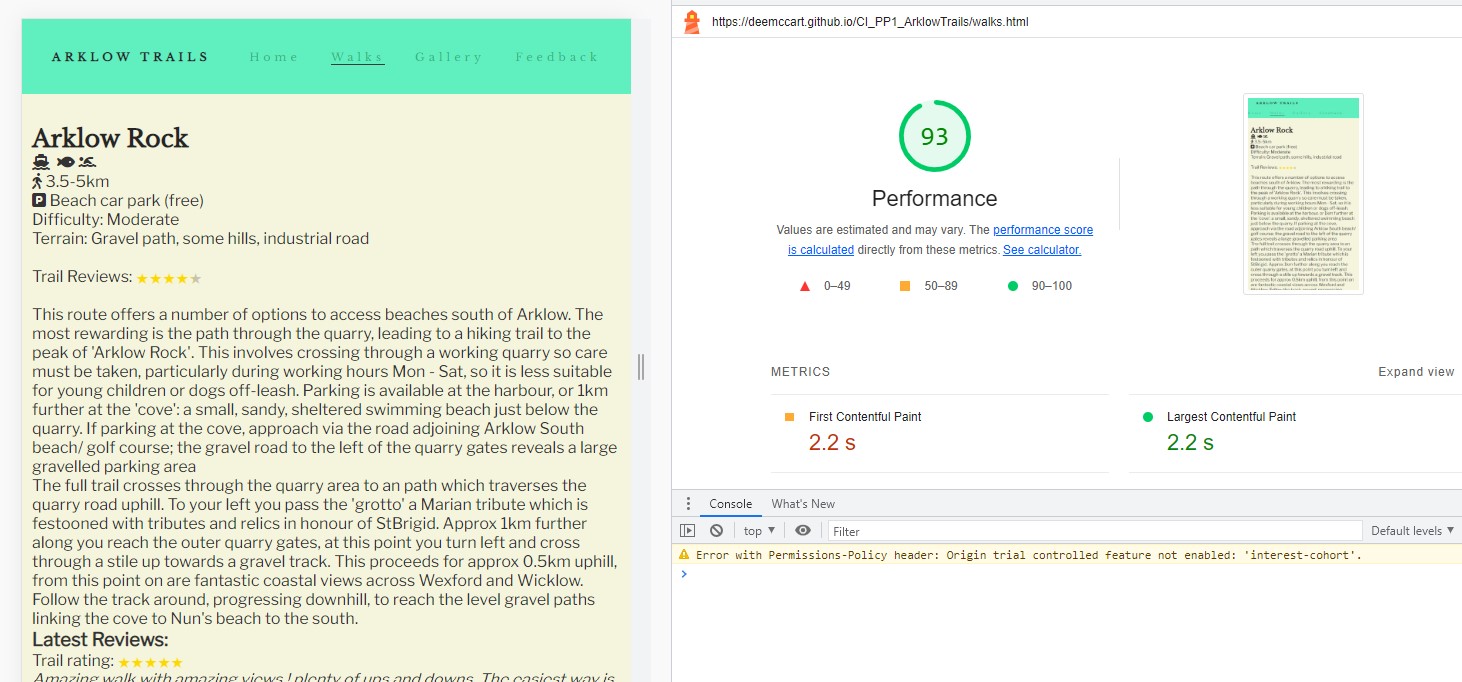 User Story Testing The user feature testing is documented in a pdf file: https://deemccart.github.io/CI_PP1_ArklowTrails/assets/readme_images/user-feature-test.pdf