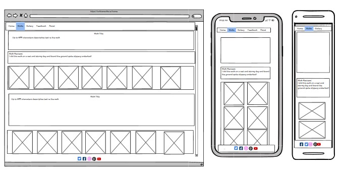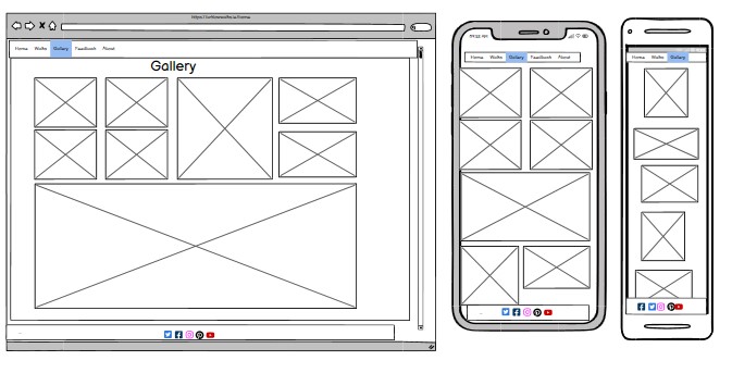 The landing page WF is shown here with 4 sceen resolutions as I found when testing that the Motorola G(7) was truncating to the right hand side for 2-column pictures display, therefore I added an additional responsiveness section to cater for 320-400 pixel screen size. This was really just an issue for the landing page, the remaining screens sized OK for the content.