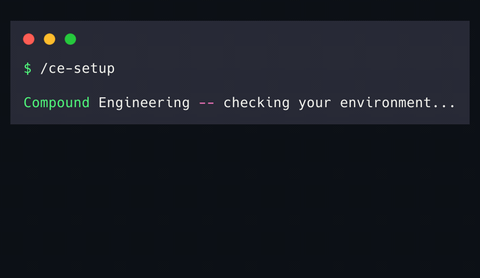 /ce-setupused to show a stub message. Now it diagnoses your environment, bootstraps config files, and installs missing tools in one interactive flow.Demo