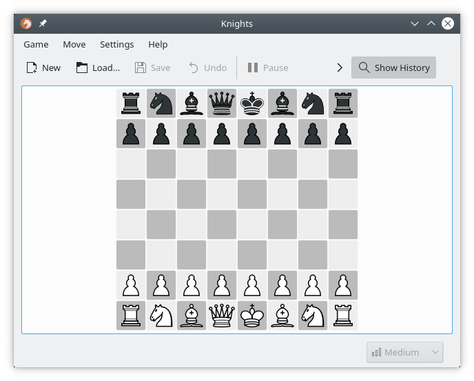 Knights aims to be the ultimate chess resource on your computer. It's designed to be both friendly to new chess players and functional for Grand Masters. At the moment you can play either against other human or against the machine using an engine like gnuchess.