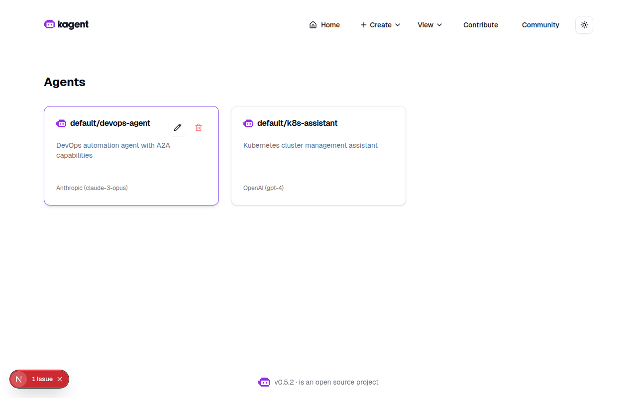 Visual Demo: Version FooterScreenshots showing the version information footer: 1. Full Page with Version Footer2. Footer Close-upThe version footer displays at the bottom of the page, showing the current kagent version. It uses a subtle, non-intrusive design that doesn't interfere with the main UI content. |