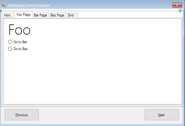 wizard.NextFunction(tpFoo, () => rbBar.Checked ? tpBar : rbBaz.Checked ? tpBaz : null);