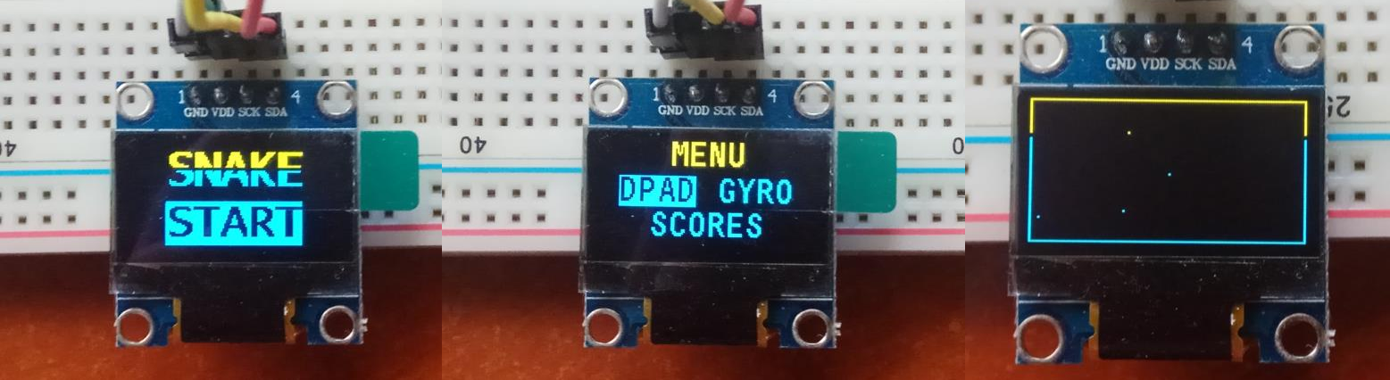 In this project the classic Snake game has been programmed using the STM32L476-Discovery board with FreeRTOS, the FAT file system to load and save the game files and the SSD1306 OLED display connected via I2C. Two different game modes have been implemented: one using the board's integrated D-pad to move the snake and the other using the integrated gyroscope.