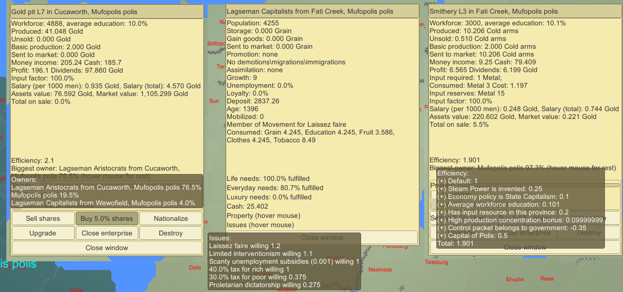 - Population agents (Aristocrats, Capitalists, Farmers, Soldiers, Workers, Tribesmen, Artisans)