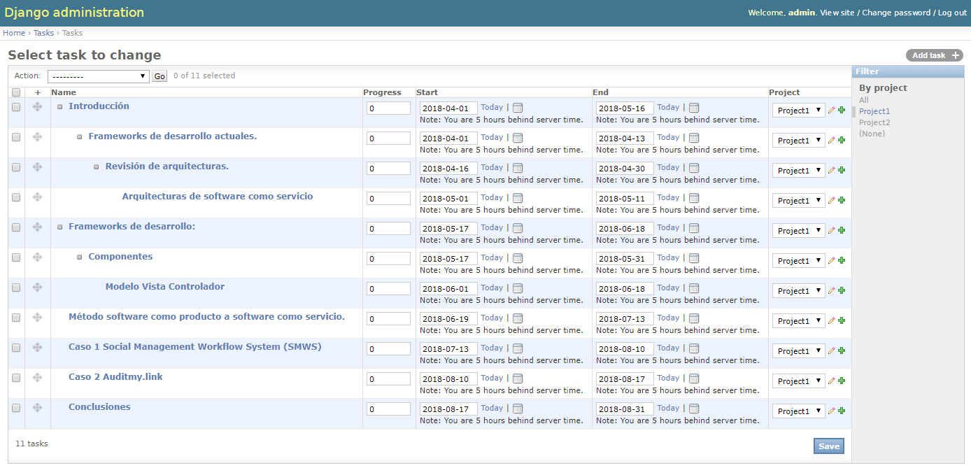 small test with django-treebeard and frappe-gantt Install pip install -r requirements.txt yarn install yarn run dev python manage.py runserver